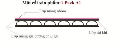 vật liệu Cách Nhiệt UPack A1 (Một Mặt Nhôm) được tạo bởi một lớp màng nhôm phủ lên 01 lớp nhựa polyethylene chứa túi khí. Sản phẩm đóng gói dạng cuộn có quy cách Rộng 1.55m x Dài 40m = 62m2 ( với những đơn hàng đặc biệt có thể đặt với chiều dài tùy ý).